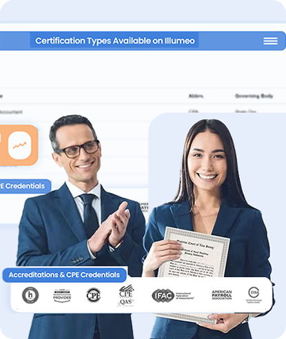 Illumeo is accredited by NASBA, IIA, Payroll.org, ISACA, GAO, SHRM, and HRCI – empowering your team to earn CPE credits while learning.